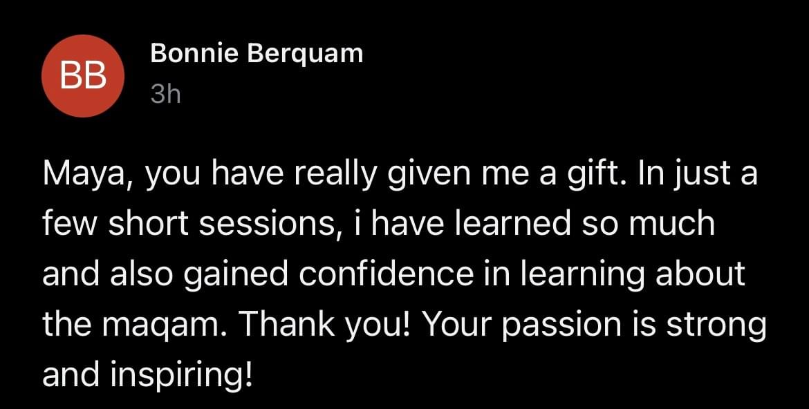 Her clear and comprehensive method makes maqam feel accessible and you don’t need any prior music theory to follow and benefit.