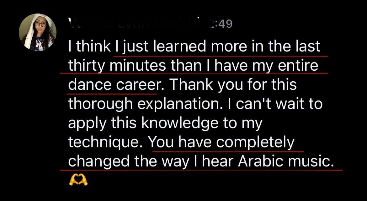 I’ve helped hundreds of dancers move from confusion to clarity not with theory, but with a step-by-step method that makes Maqam and Taqsim feel intuitive, grounded, and accessible.